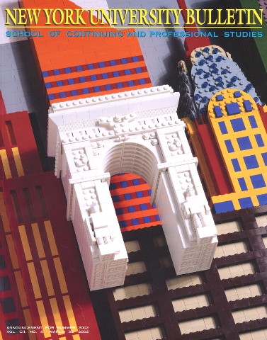 | I did the cover art for the spring 2002 NYU bulletin. It was a collaborative commission with fellow LEGO sculptor Eric Harshbarger. (Click on the image for a closeup view of the front and back cover) |